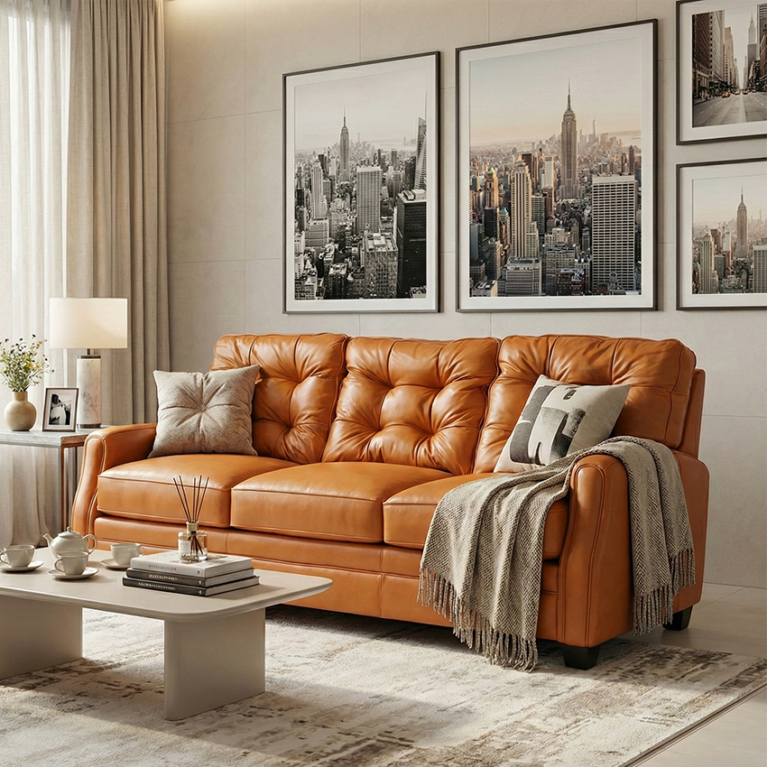 1782-31 OrangeLeather Sofa