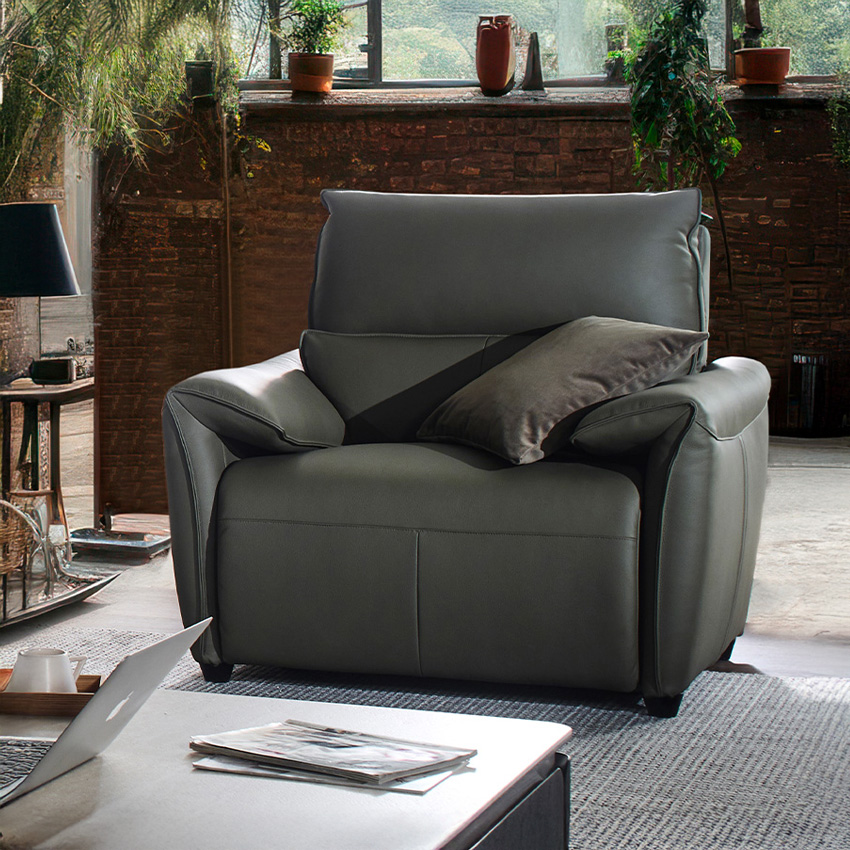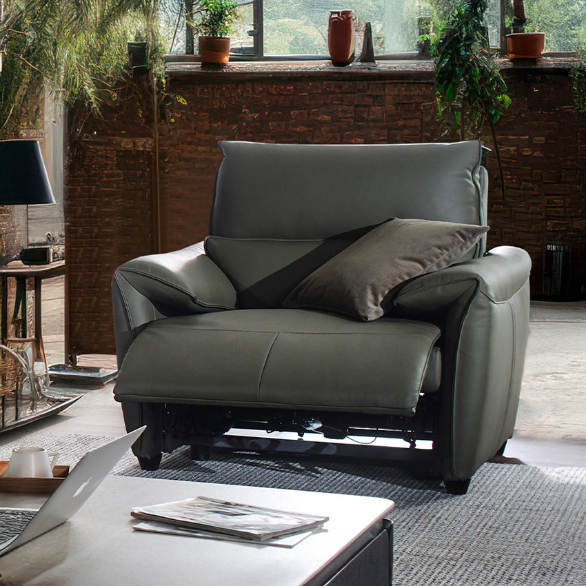 Lausanne-1S-Olive Leather Recliner Chair