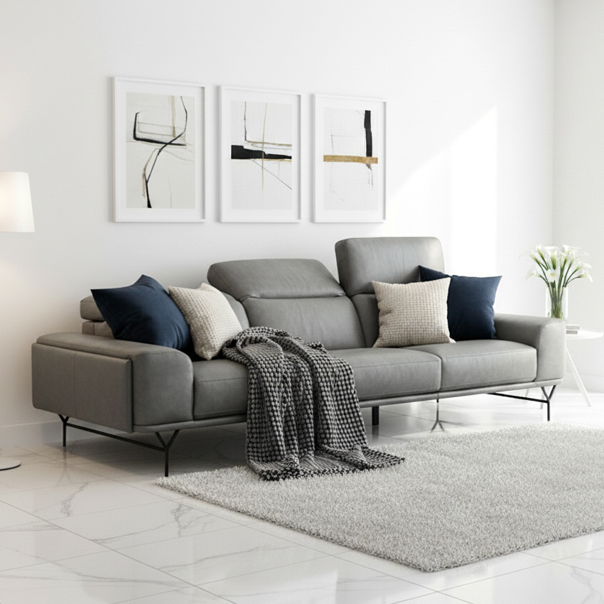 10560-4-Seater-Grey Leather Sofa