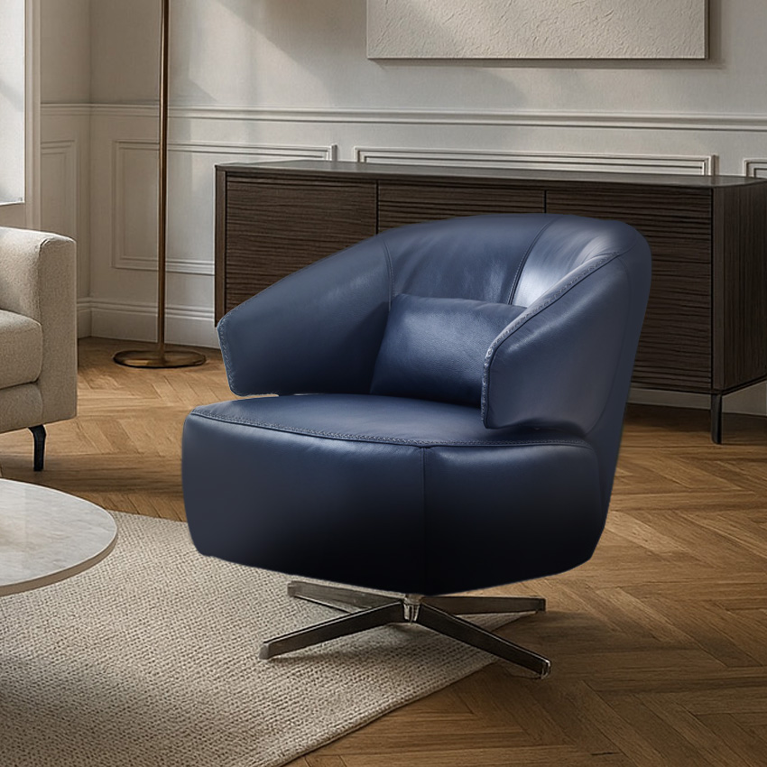 12812-NVY Leather Swivel Chair